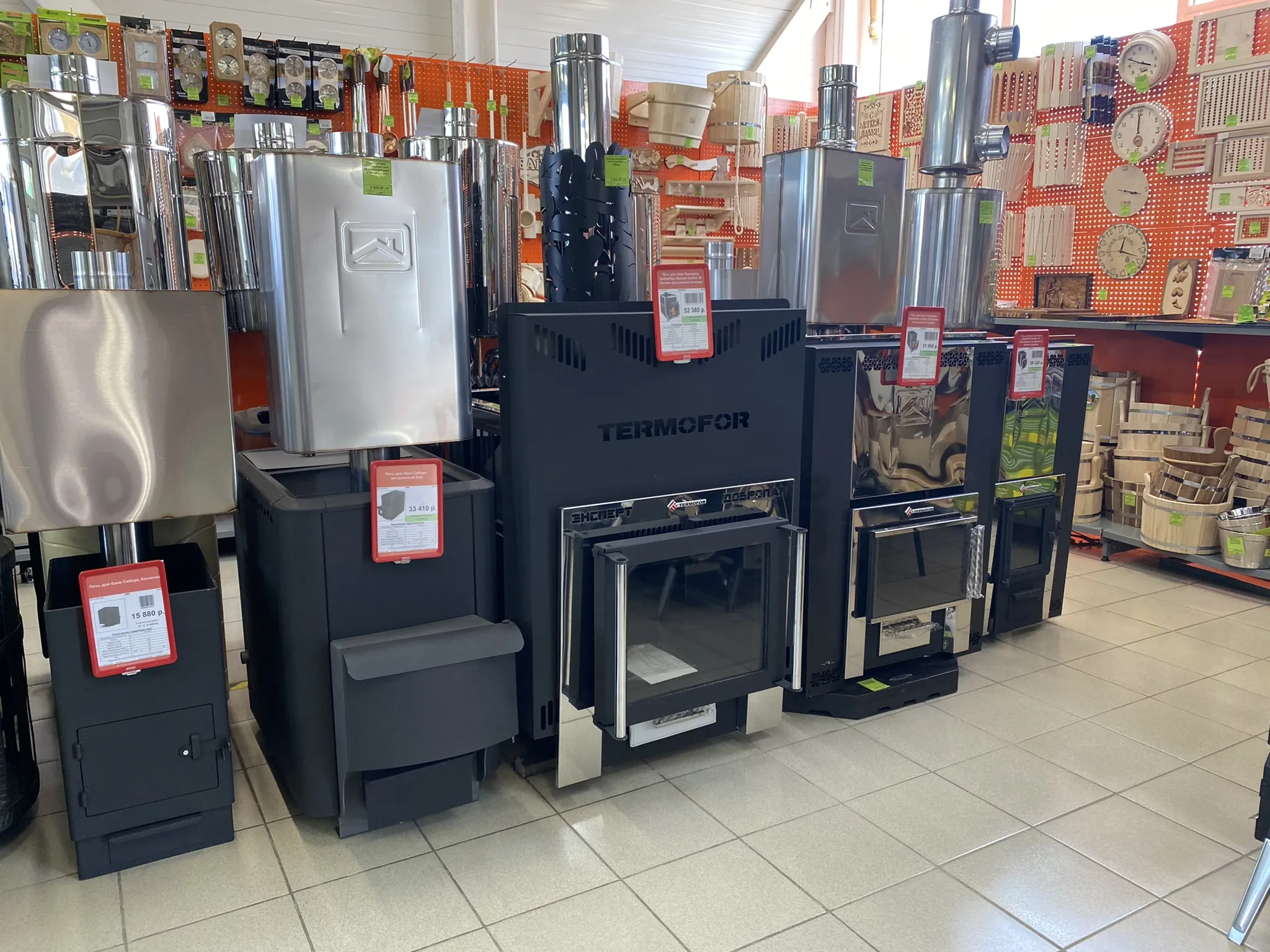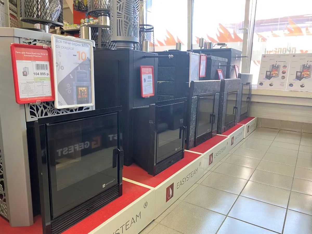 Гарантия лучшей цены на банные печи. В магазине представлены образцы парных.